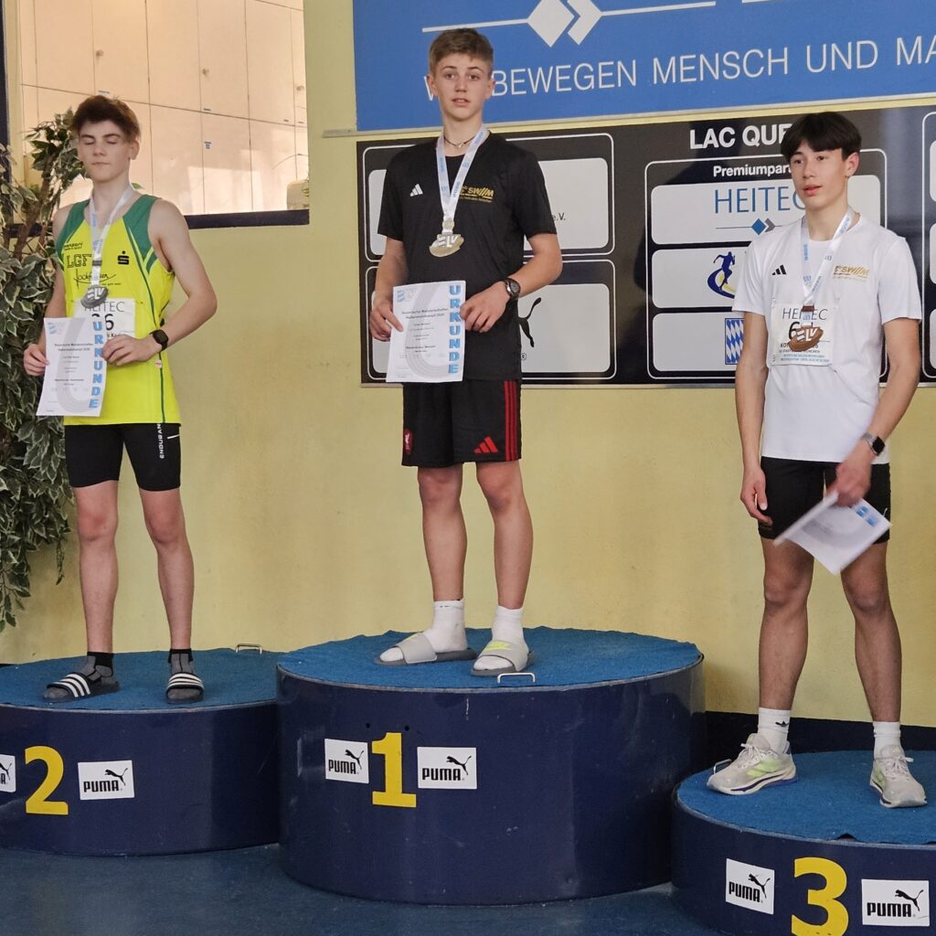 In der Halle des LAC Quelle-Fürth setzte Colin Heimerl seine in der Münchner Werner-von-Linde-Halle 2026 begonnene Titelsammlung fort. Er siegte im Vierkampf der M15 (persönliche Bestleistung im Hochsprung mit 1,70 m !) vor sehr starker Konkurrenz seines Jahrgangs.