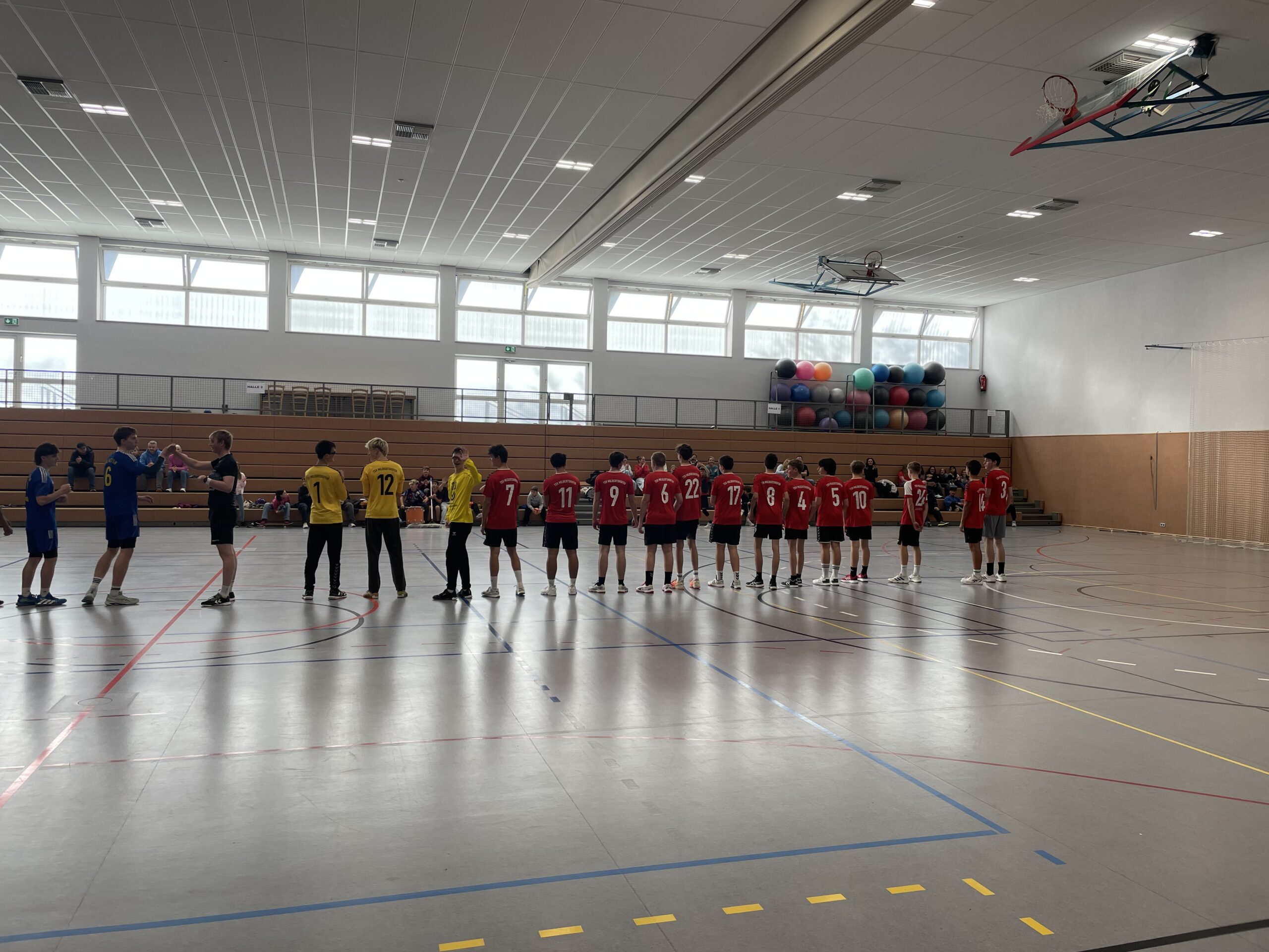 Entsprechend angeheizt startete Mil die Partie und stellte den Gästen von vorne herein eine stabile Abwehr entgegen. Mehrfach hielt sie bis zum passiven Spiel dicht und auch Keeper Kili zeigte in der Anfangsphase eine sehr starke Leistung. Im Angriff klappte vorerst alles und Milbertshofen zog davon: Nach dem 7:3 in der 15. Minute nahmen die Gäste die erste Auszeit und alles sah gut aus für die Hausherren! Doch Mil konnte sich nicht lange freuen, denn sie schafften es nicht mehr, die Leistung fortzuführen und fingen an, fahrig zu werden. Die Partie war nun ausgeglichen und 3 verworfene Würfe vom 6er brachten die Gäste schnell wieder ins Spiel. Mil’s Vorsprung schrumpfte bis zur Pause auf 12:10 weg.